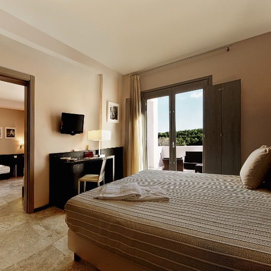 Le Suite Superior, con doppio ambiente (camera d’ingresso con divano letto e camera matrimoniale), sono dotate dei migliori comfort (climatizzazione, TV LCD, frigobar, telefono, cassaforte, servizi con asciugacapelli, connessione a internet via cavo gratuita).